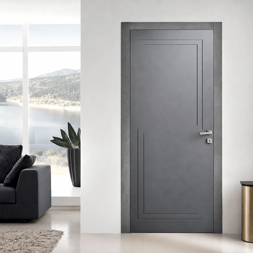 The Axio Interior Door delivers a bold, architectural look through clean lines and a refined matte finish, making it ideal for modern and minimalist interiors. Its subtle geometric detailing adds depth without overwhelming the space, creating a perfect balance between design and simplicity. Available in 3 standard sizes and a wide range of paint color options, Axio can be tailored to suit your interior concept. Choose left or right-hand opening and personalize the door further with multiple hinge color selections for a seamless, cohesive finish. The Axio Interior Door is designed to elevate contemporary spaces with precision craftsmanship and understated elegance.