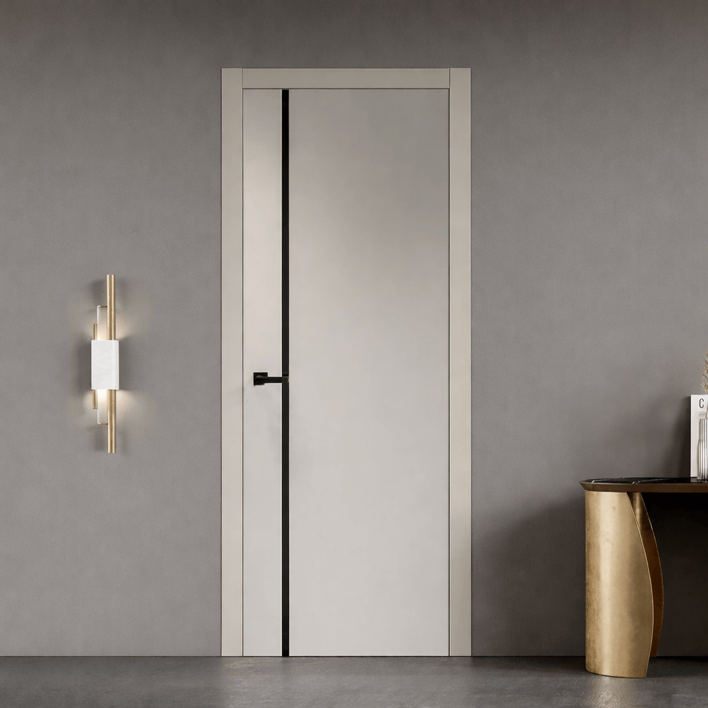 The Kosmo Interior Door makes a bold modern statement with its smooth surface and striking vertical accent detail, designed to add contrast and architectural interest to contemporary interiors. Its minimalist form and sharp lines create a refined, high-end appearance that integrates seamlessly into modern spaces. Available in 3 standard sizes and a range of paint color options, Kosmo can be customized to suit your interior vision. Choose left or right-hand opening and personalize the door further with multiple hinge color options for a cohesive finish. The Kosmo Interior Door delivers modern elegance through precision design and craftsmanship.