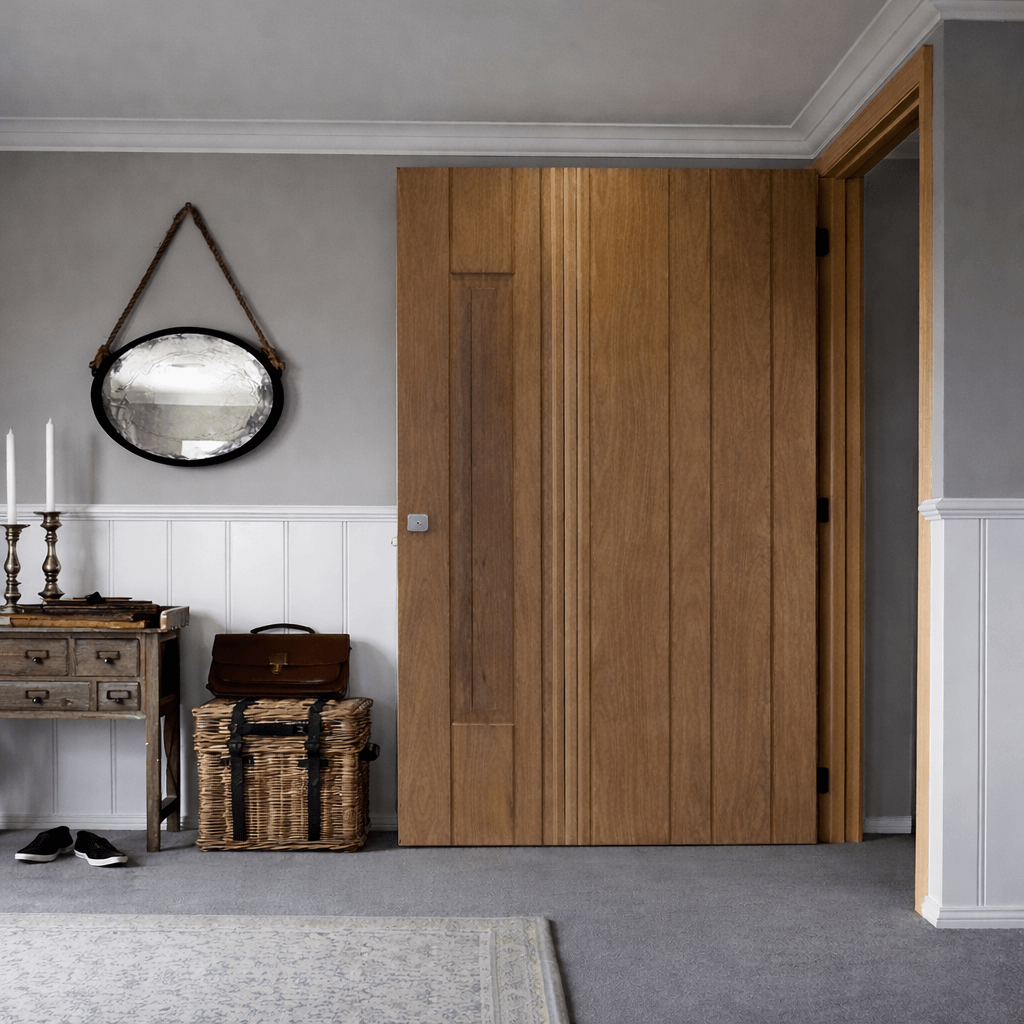 The Nivo Interior Door features a sculpted vertical design that adds depth and architectural character to modern interiors. Its clean wood surface is enhanced by subtle linear detailing, creating a sophisticated balance between texture and simplicity. Available in 3 standard sizes and a range of paint or wood finish options, Nivo can be customized to suit your interior style. Choose left or right-hand opening and personalize the look further with multiple hinge color options for a seamless finish. The Nivo Interior Door delivers modern elegance through thoughtful design and quality craftsmanship.