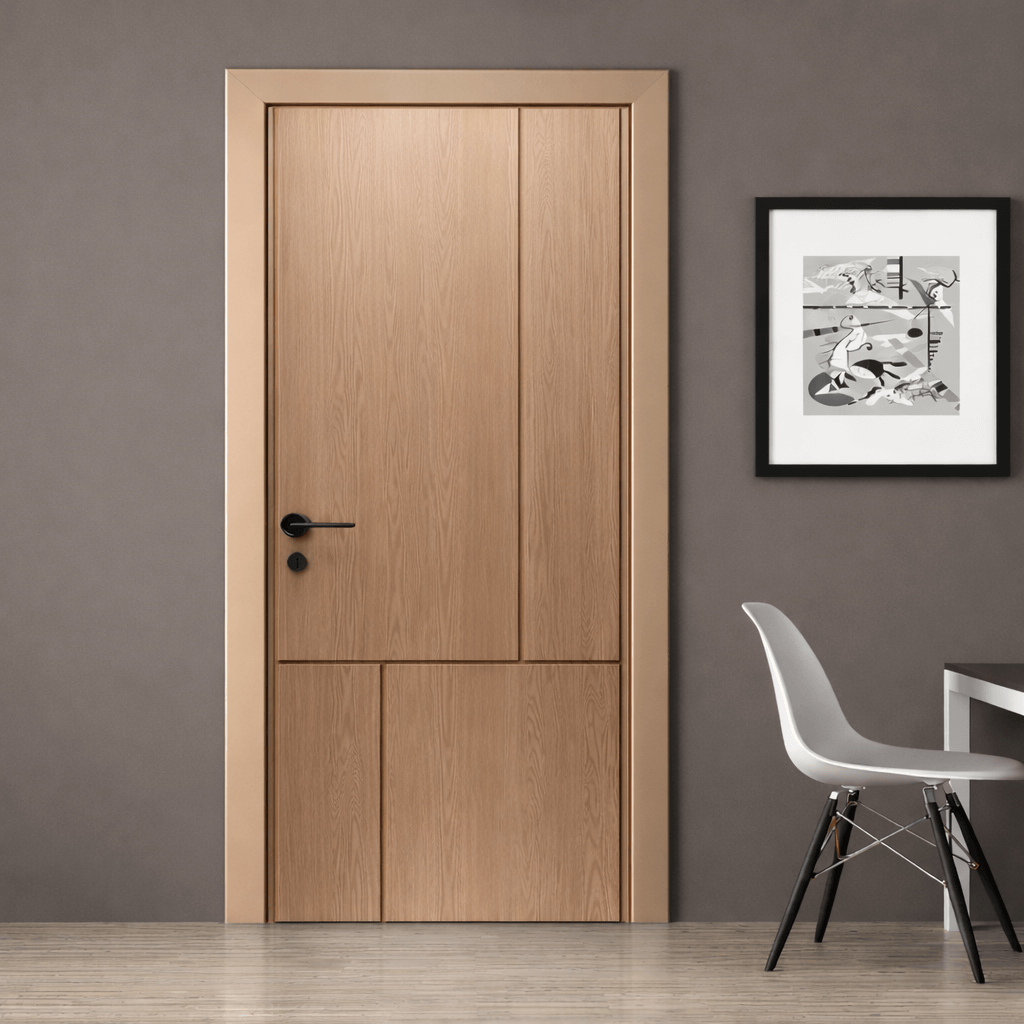 The Rizo Interior Door features a distinctive panel composition that blends clean geometry with natural wood warmth. Its balanced layout and subtle transitions create visual interest while maintaining a refined, modern aesthetic. Available in 3 standard sizes and a selection of paint or wood finish options, Rizo can be customized to suit your interior style. Choose left or right-hand opening and complete the look with customizable hinge color options for a seamless finish. The Rizo Interior Door delivers contemporary elegance through thoughtful design and quality craftsmanship.