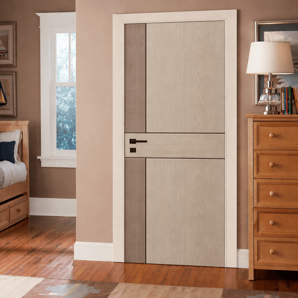 The Stilo Interior Door features a refined two-tone panel composition with clean horizontal and vertical lines, creating a modern and balanced aesthetic. Its subtle contrast and structured layout add depth while maintaining a calm, minimalist presence. Available in 3 standard sizes and a selection of paint or wood finish options, Stilo can be customized to suit your interior palette. Choose left or right-hand opening and complete the look with customizable hinge color options for a seamless finish. The Stilo Interior Door delivers modern elegance through thoughtful design and precise craftsmanship.